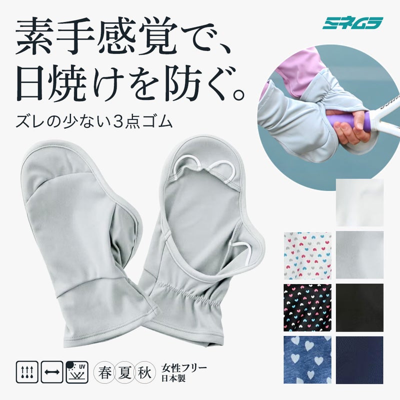 日焼けは防ぎたい。でも、素手だと日焼けする、でも、ラケットは素手で握りたい。そんなテニスプレーヤーの悩みを解決したのが、ミネムラのハンドカバーです。一般的なものより長い『第2関節』までの設計で、うっかり焼けを許しません。手の平がオープンなので、グリップの感覚はそのまま。着脱の手間なく、休憩中の水分補給やスマホ操作もスムーズです。