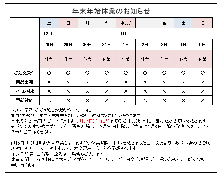 年末年始休業のお知らせ