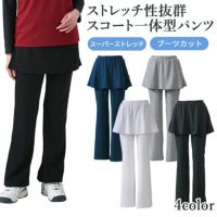 ハイテンションスコート付きパンツ ぴったりサイズ ブーツカット ポケット付き テニス ストレッチ UVカット レギンスパンツ スカート付き 99-642
