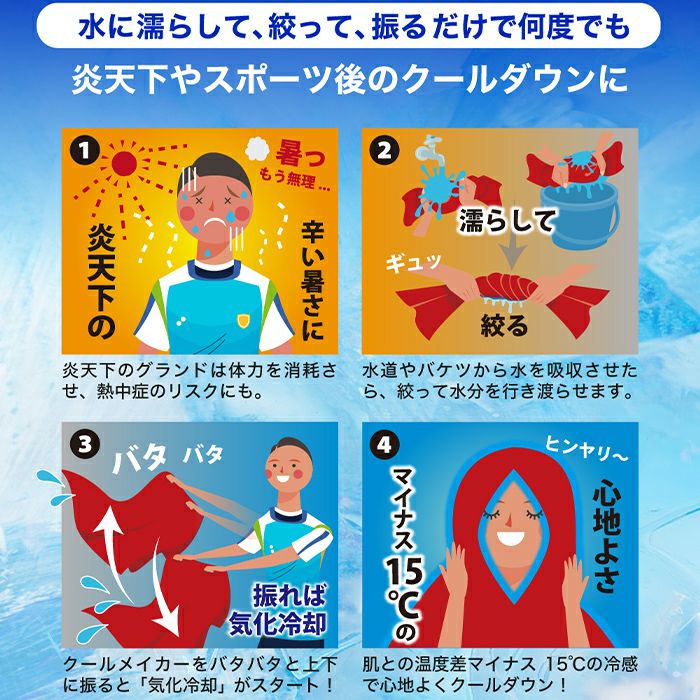 他の画像を見る 夏の必需品クールタオル濡らして絞って振るだけで冷える 【10%OFF】 クールタオル 冷感 熱中症対策 UVカット 水で濡らすとひんやりするタオル 798 通常販売価格 ¥ 1,320 販売価格 ¥ 1,180 税込 カートに入れる お気に入りに登録する